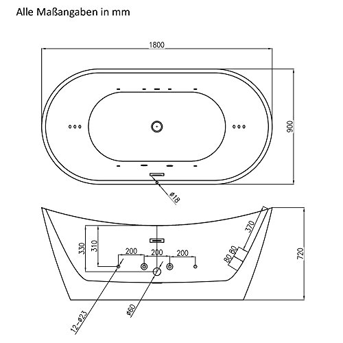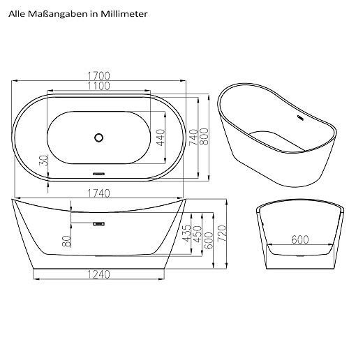 i-flair Freistehende Badewanne ALMERE Design – aus Acryl in Weiß – verschiedene Größen (150×75 cm)